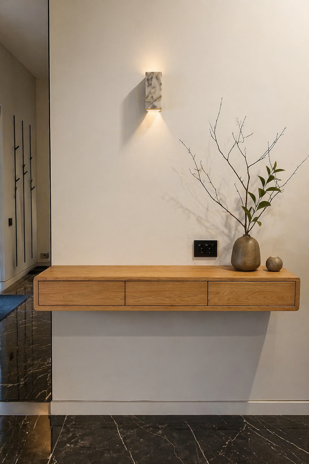 Парящие полки, стеллажи и системы хранения из натурального дерева.